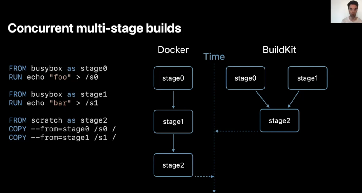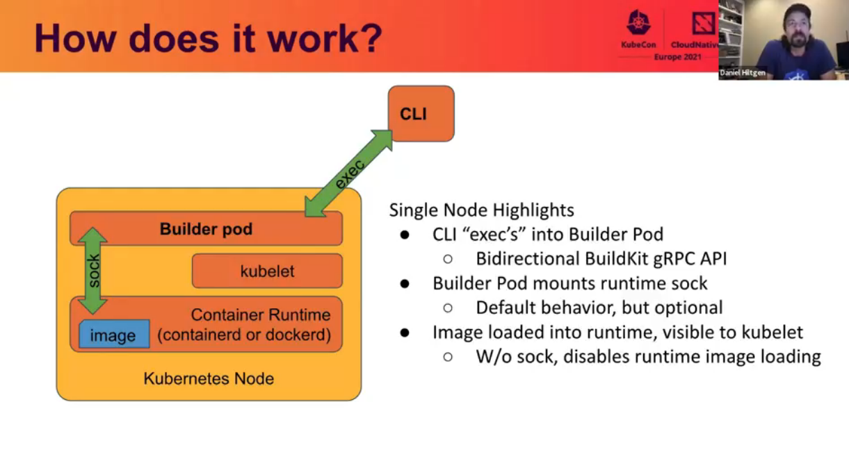 Gautier Delorme outlined the features of BuildKit (better caching for image builds, build-time secrets, multiple output formats) and how Apple is leveraging these in their “BuildKit farm” running on Kubernetes, which builds images for CI and production.