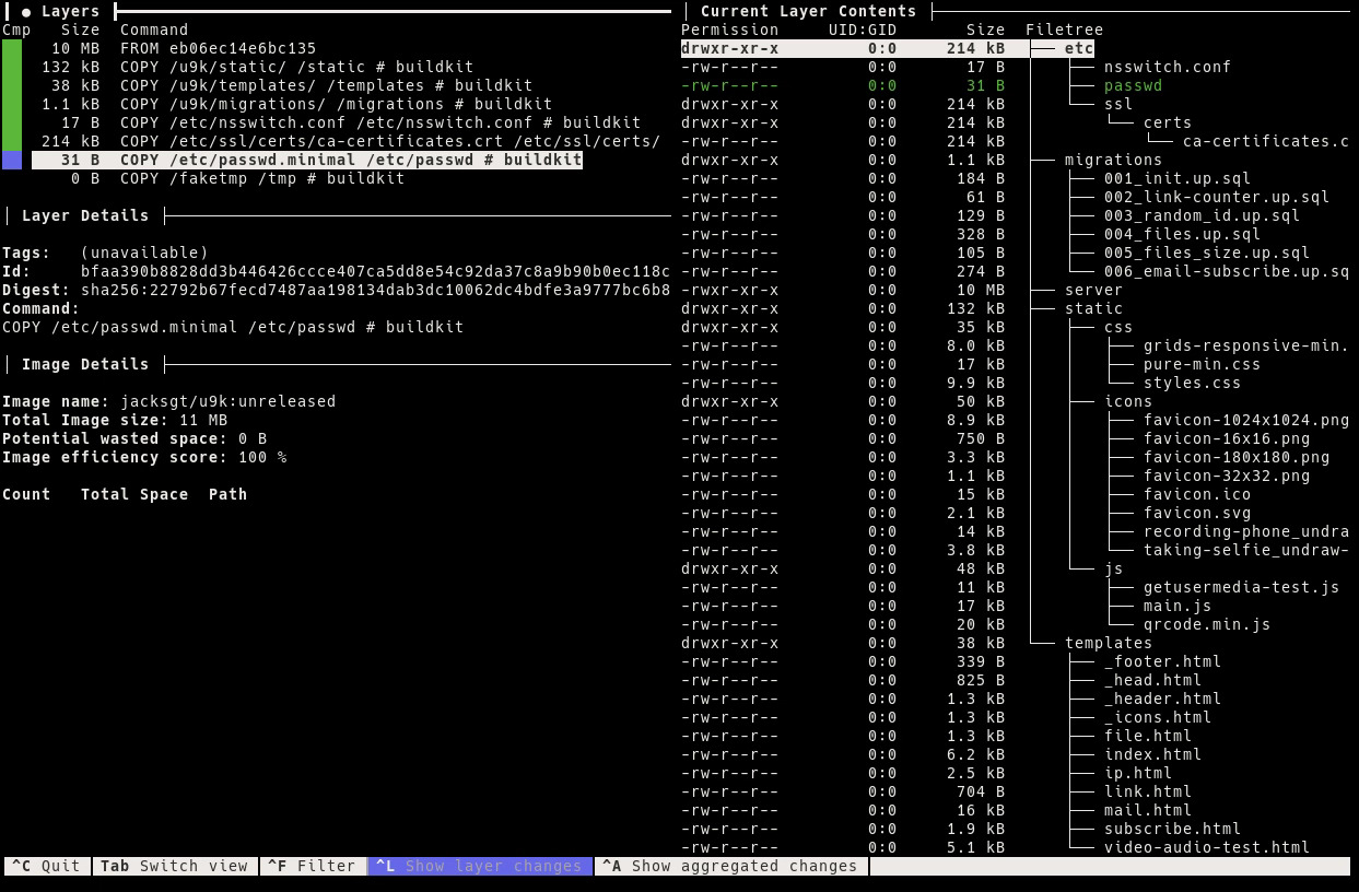 After you are done with all of this, you can use dive to verify your container image only contains the necessary files and directories: