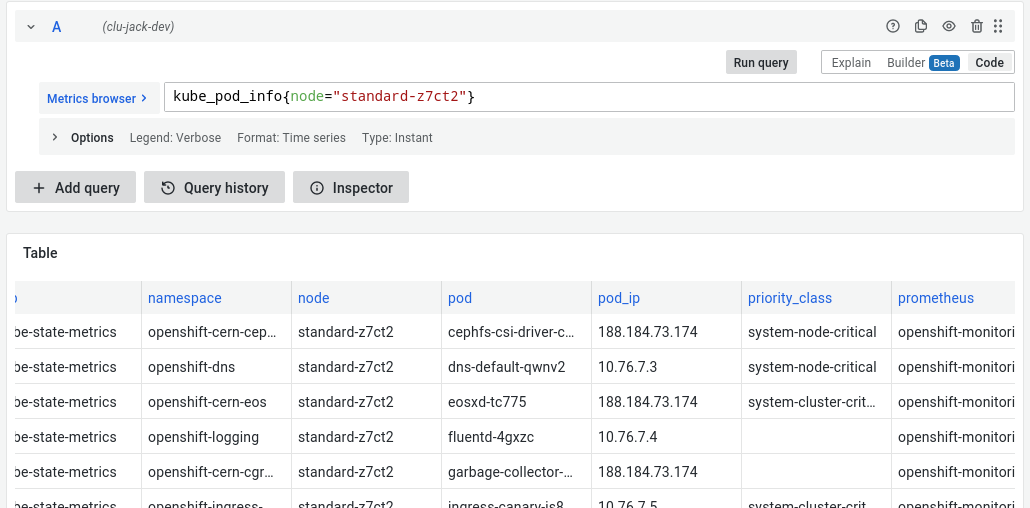 Since this metric does not have the node label, we’ll need to join it with the previous metric to filter for only pods running on a particular node.