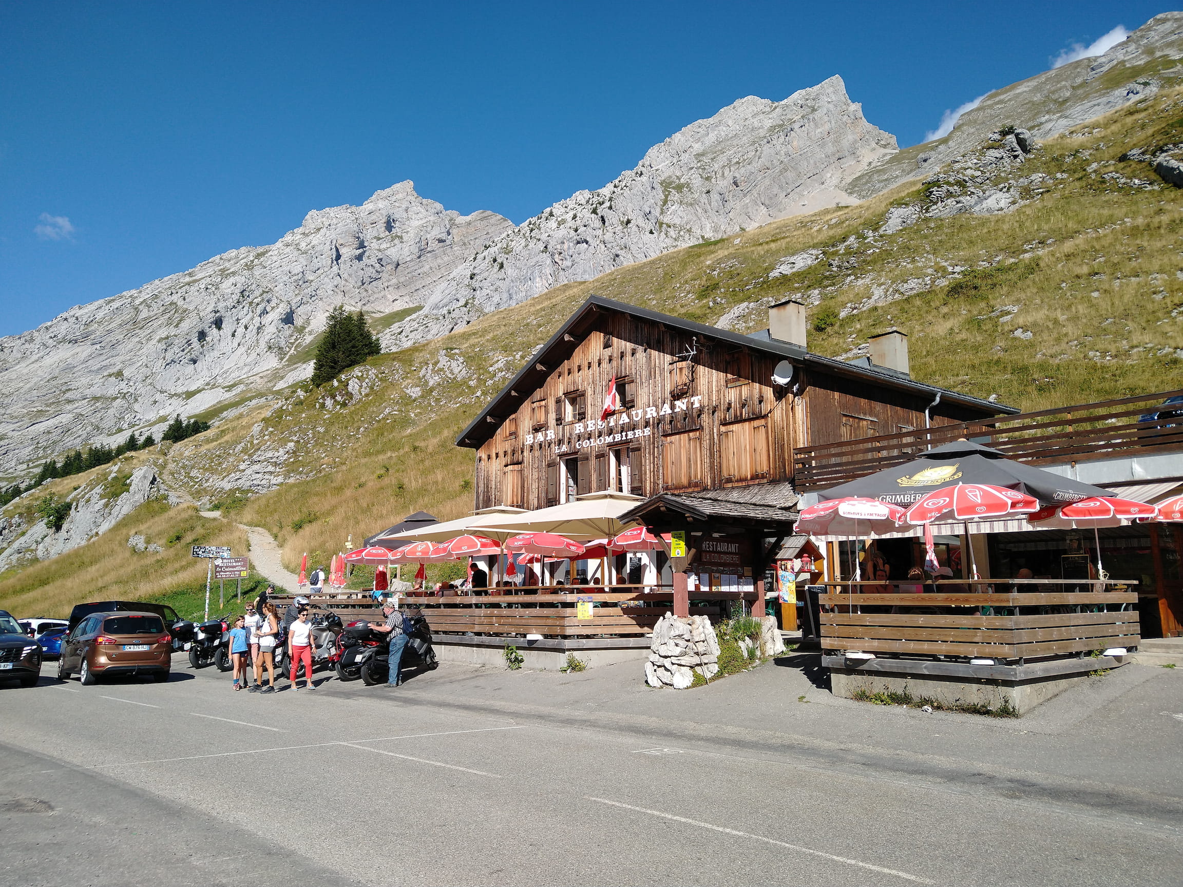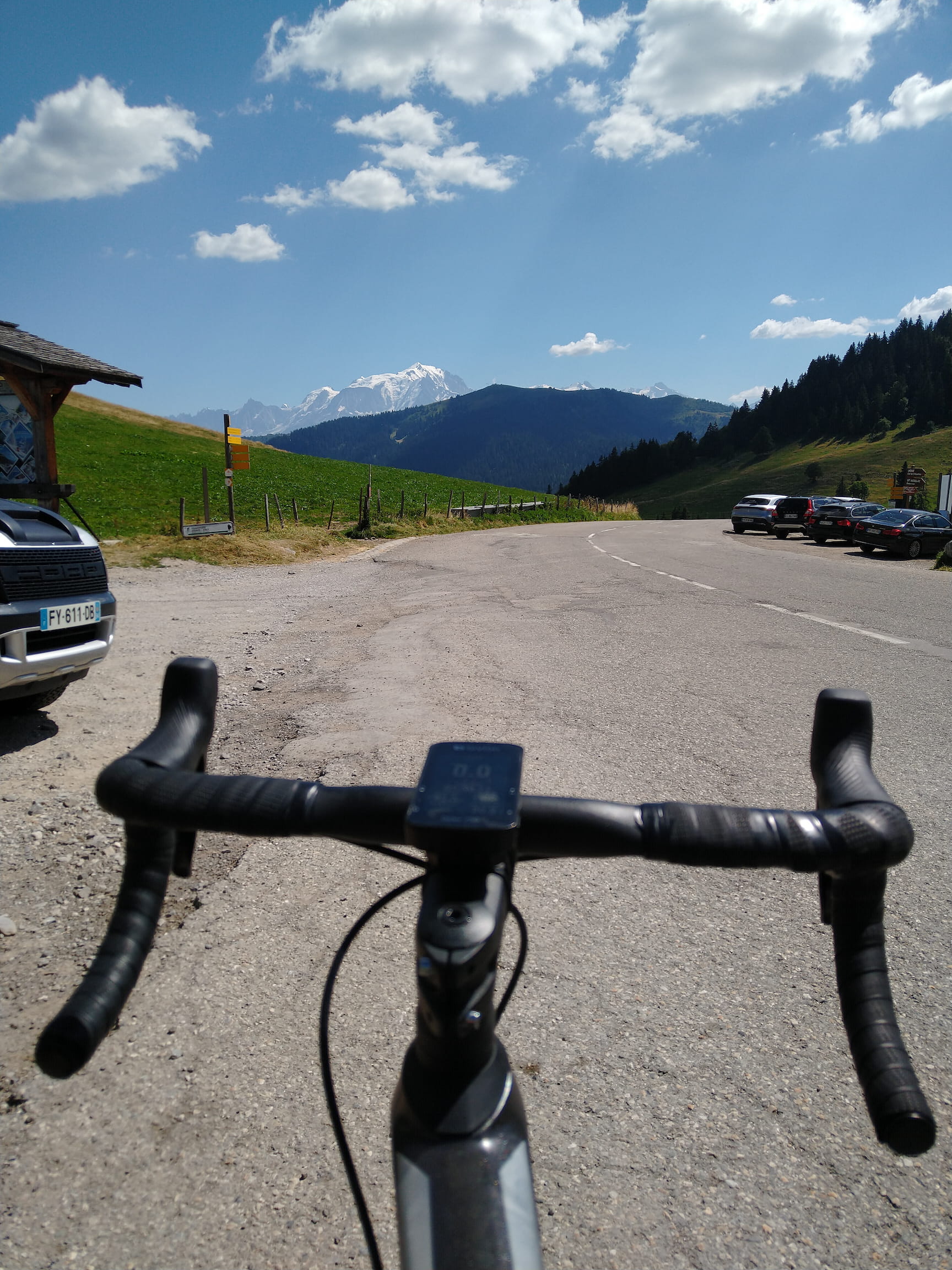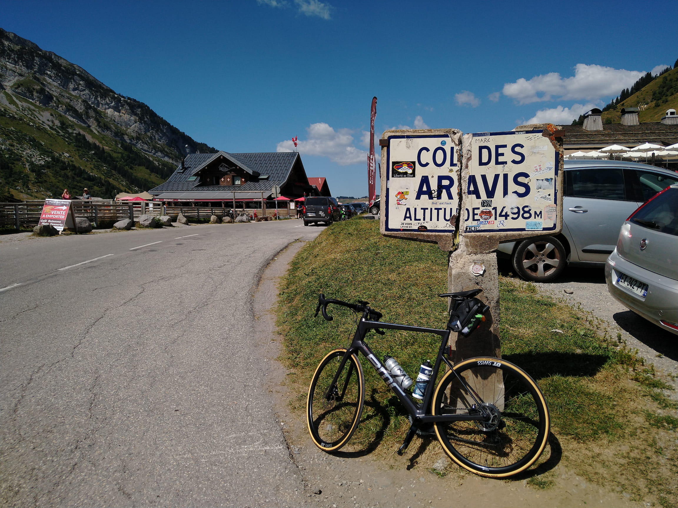 I did my lunch stop in La Clusaz to refuel before tackling the Col des Aravis in the early afternoon. It’s not a very long climb from La Clusaz, but there are no trees to provide any shade so the 8 kilometers were quite intense in the midday heat.