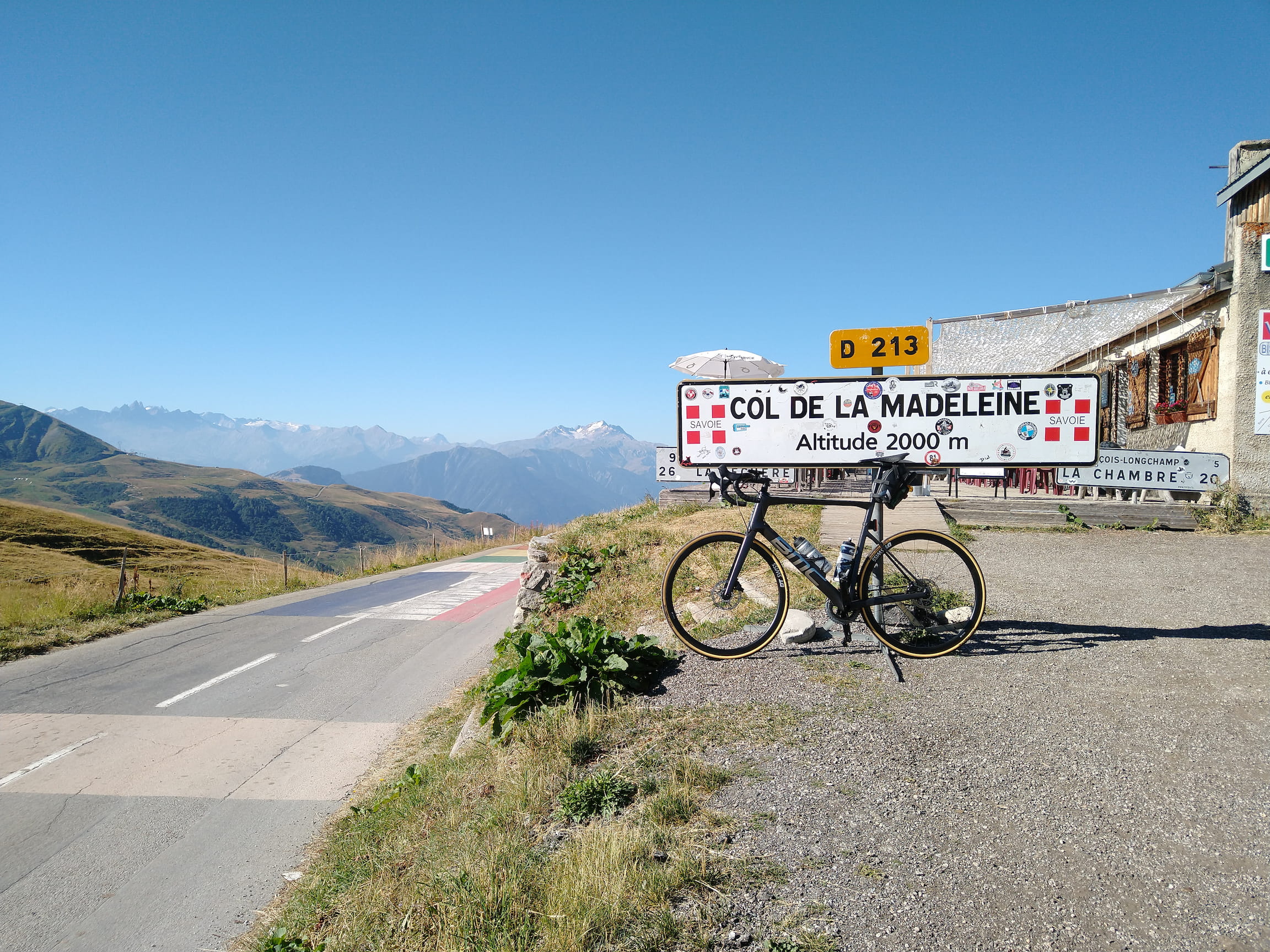 On the first 20 kilometers I could gently warm up my legs while cycling along the Isère valley, before starting the first big climb of the day: Col de la Madeleine from Feissons-sur-Isère. This infamous Tour de France climb is 25 kilometers long and has an average gradient of 6% - but the average is deceptively low because in the middle there are two flat kilometers, whereas most kilometers are between 7 and 10 percent gradient. Nevertheless, I can assure you that the climb is totally worth it: a small and quiet road, sleepy mountain villages, surrounded by beautiful scenery - the ingredients for a perfect climb.