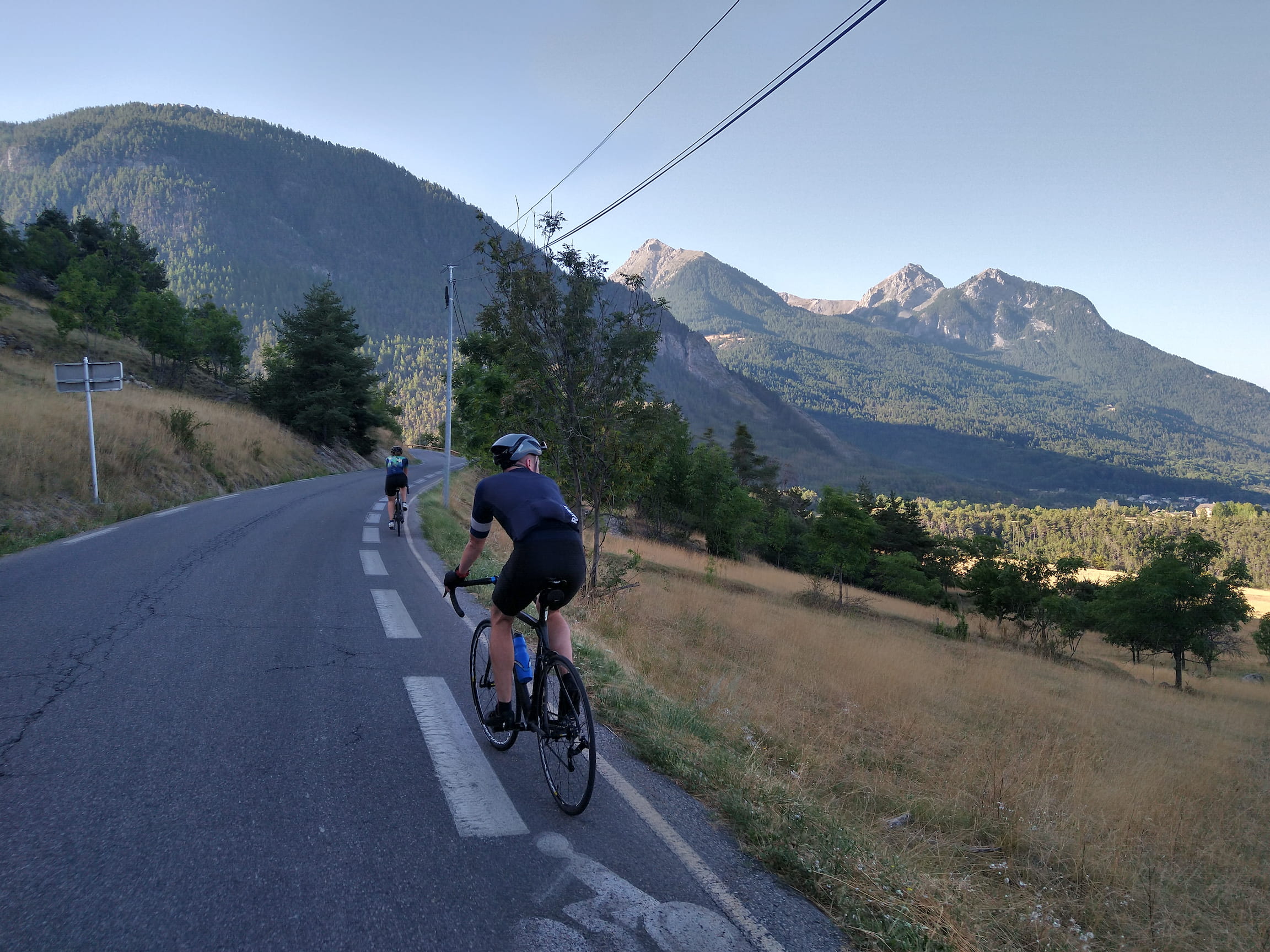 Climbing out of Briançon alongside fellow cyclist
