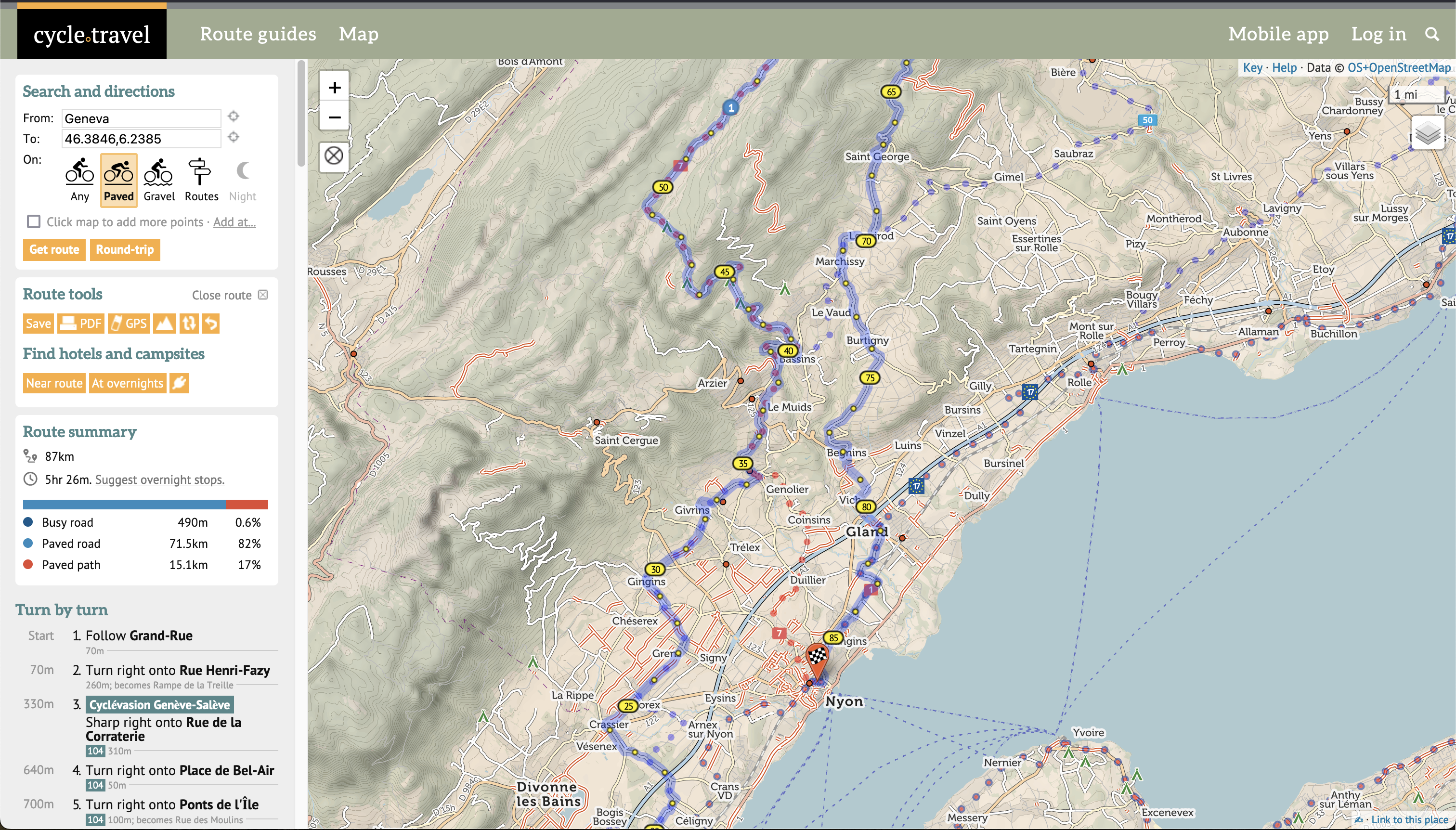 If your priority is finding the most enjoyable and safe roads, look no further than Cycle.Travel. This tool is built from the ground up for bicycle touring, and its routing engine is phenomenal. It intelligently prioritizes dedicated cycling paths and quiet country lanes, actively steering you away from busy, unpleasant roads.